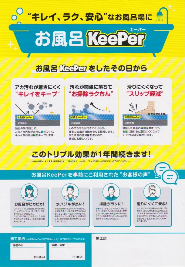 | お風呂浴槽KeePerコーティング | 15,000円 |