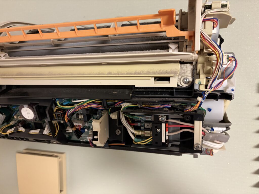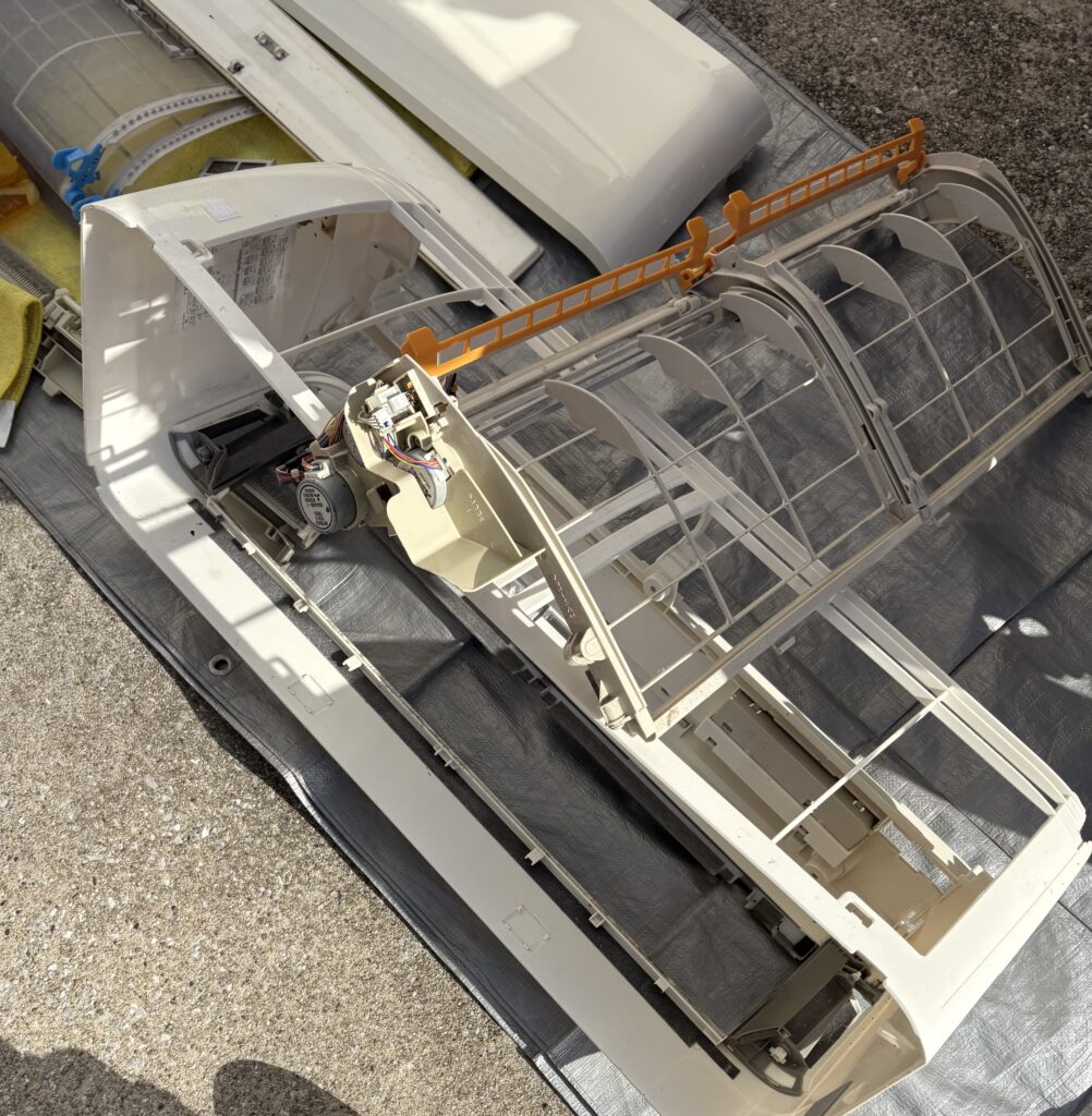 お掃除機能付きエアコンを施工させていただきました。やはり、お掃除機能付きエアコンの内部には非常にカビが繁殖していました。このエアコンは分解洗浄・組み立てに非常に時間がかかり、お客様を不安にさせてしまいました。