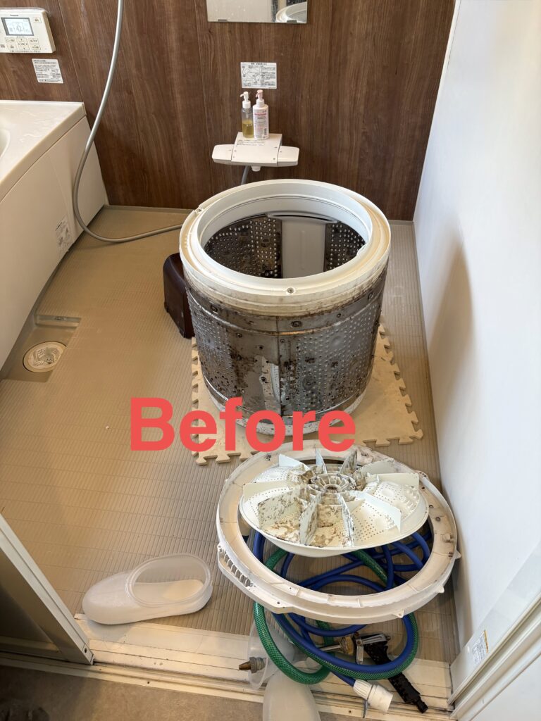 洗濯したのに臭いがし、洗濯物にゴミが付着してくると相談を受けて訪問し、分解清掃を行いました。数日後、喜びの声を頂きました。「洗濯物がにおわなくなり、ゴミの付着もなくなった」という声をいただきました。