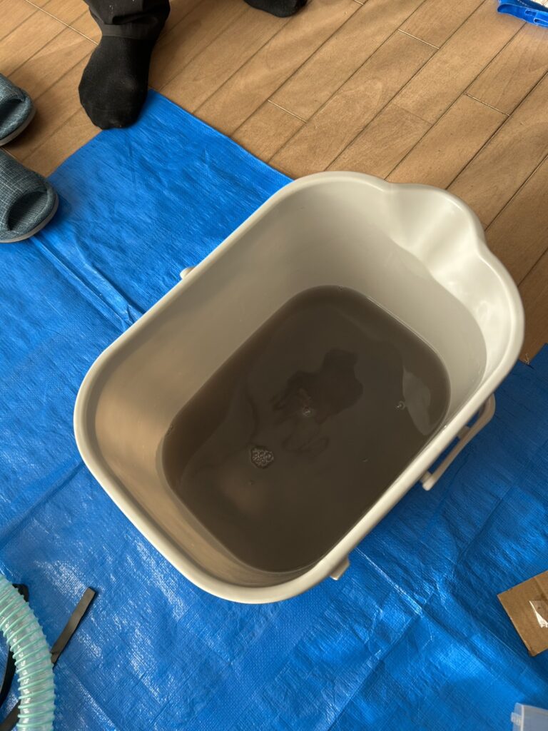 エアコン内のホコリやカビ菌を洗い流した汚水を見て、驚かれていました。